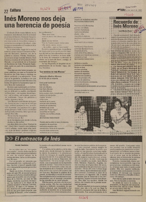 Inés Moreno nos deja una herencia de poesía. [artículo]_