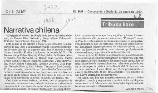 Narrativa chilena [artículo] Luis Agoni Molina.