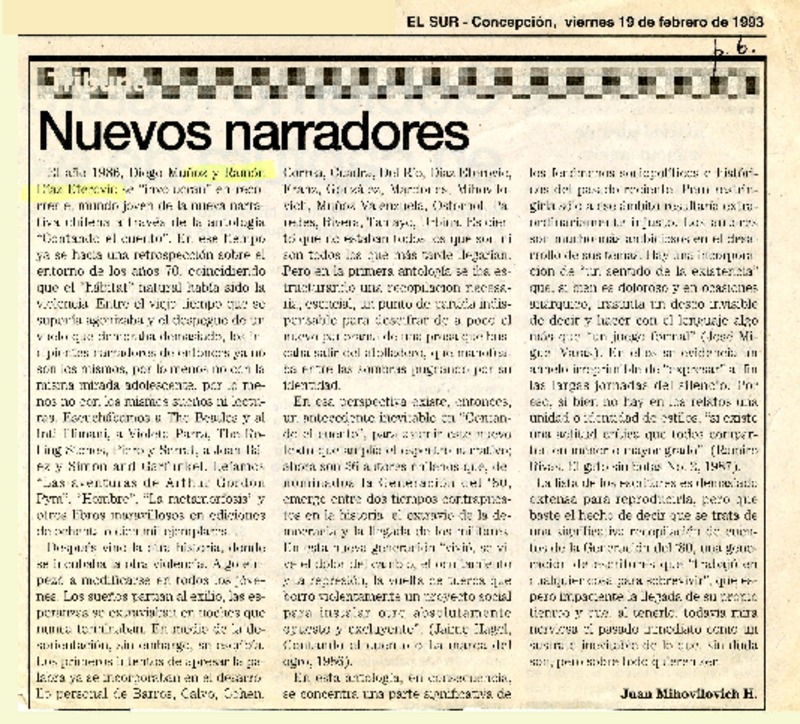 Nuevos narradores [artículo] Juan Mihovilovic.