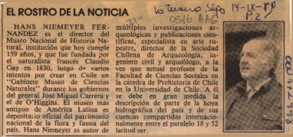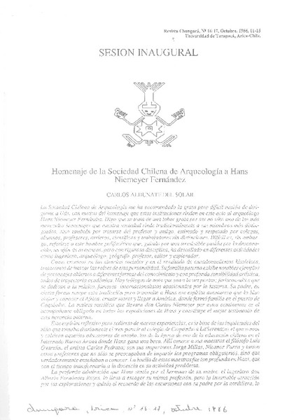 Homnenaje de la Sociedad Chilena de Arqueología a Hans Niemeyer Fernández [artículo] Carlos Aldunate del Solar.