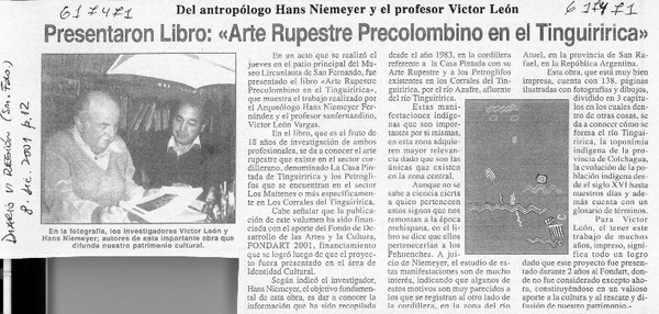 Presentaron libro "Arte rupestre precolombino en el Tinguiririca" [artículo]