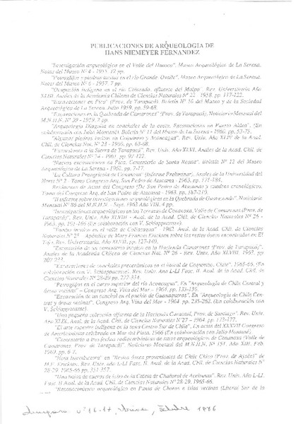 Publicaciones de arqueología de Hans Niemeyer Fernández [artículo].