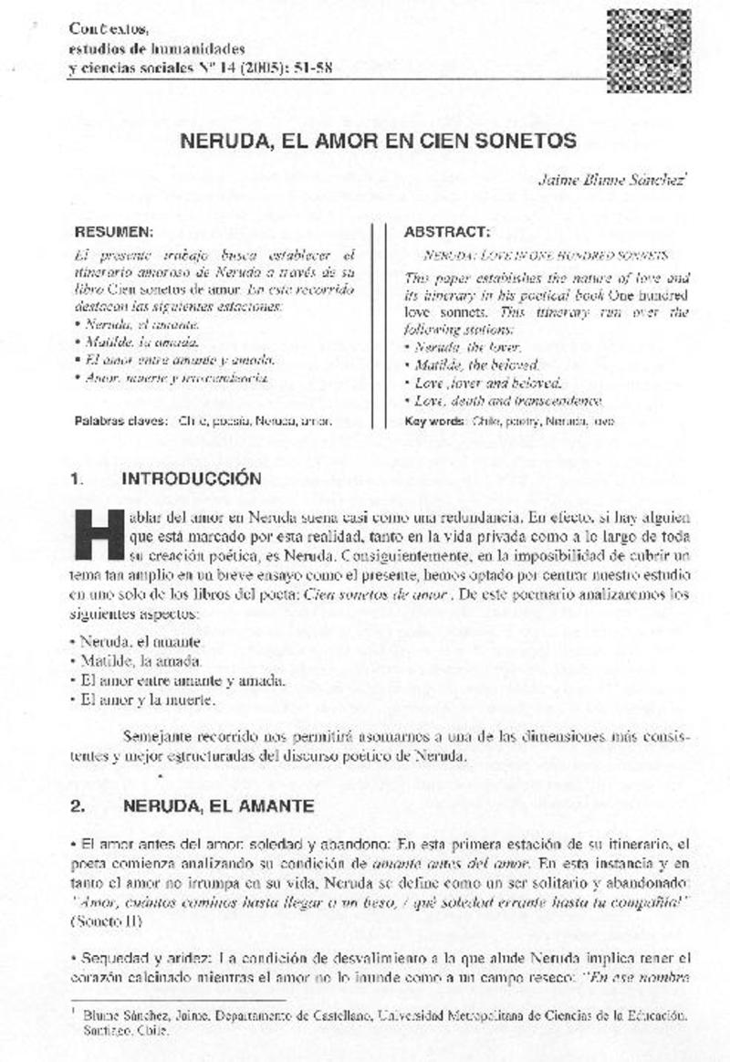Neruda, el amor en cien sonetos [artículo] Jaime Blume Sánchez.