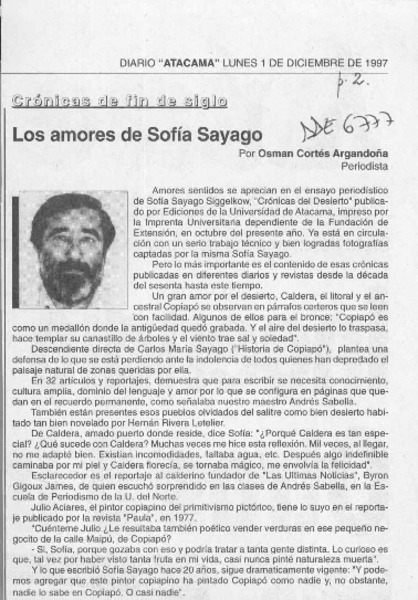 Los amores de Sofía Sayago [artículo] Osmán Cortés Argandoña.
