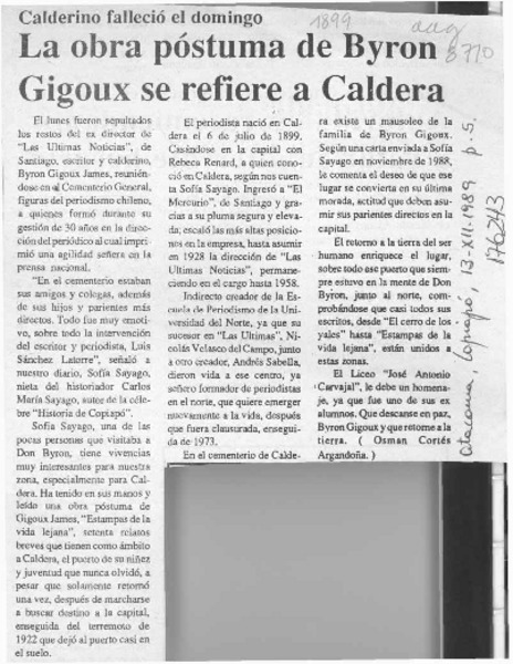 La obra póstuma de Byron Gigoux se refiere a Caldera [artículo] Osmán Cortés Argandoña.