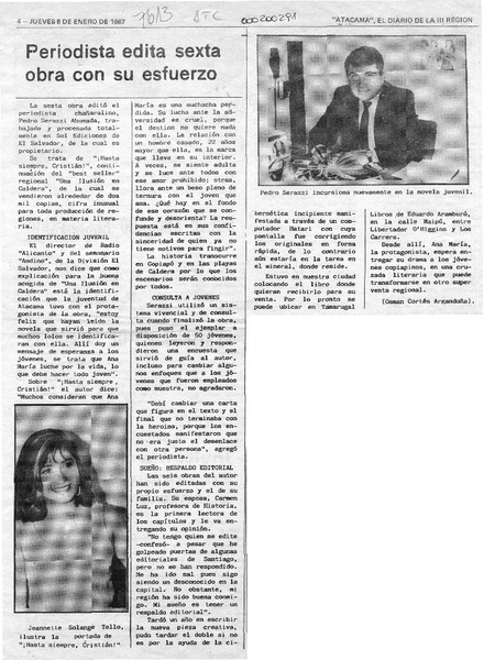 Periodista edita sexta obra con su esfuerzo [artículo] Osmán Cortés Argandoña.