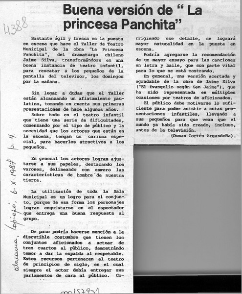 Buena versión de "La princesa Panchita" [artículo] Osmán Cortés Argandoña.