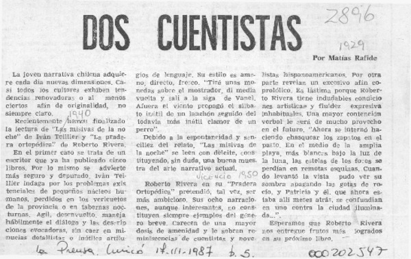 RIVERA VICENCIO, ROBERTO - PRADERA ORTOPEDICA, LA - TEILLIER, IVAN - MISIVAS DE LA NOCHE, LAS