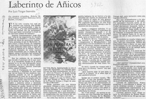 Laberinto de añicos [artículo] Luis Vargas Saavedra.