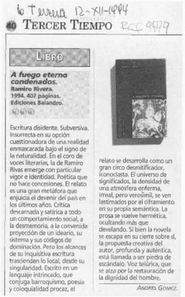 A fuego eterno condenados [artículo] Andrés Gómez.
