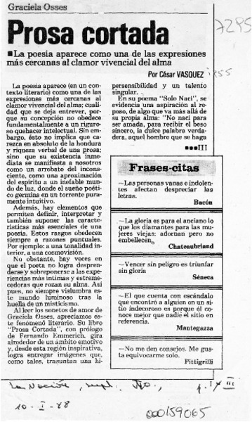 Presentación de "Prosa cortada" de Graciela Osses [artículo] Ruth.