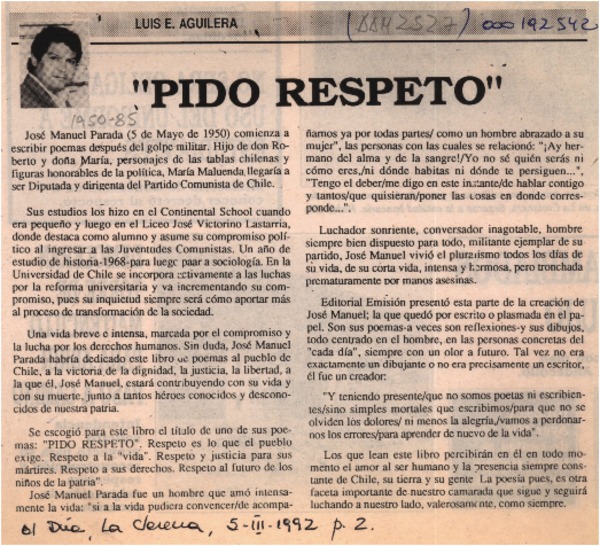 PIDO RESPETO - PARADA MALUENDA, JOSE MANUEL