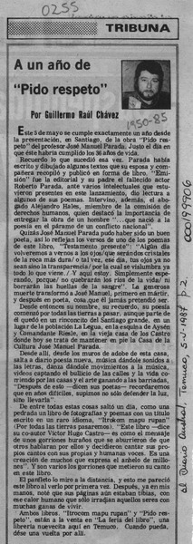 A un año de "Pido respeto" [artículo] Guillermo Raúl Chávez.