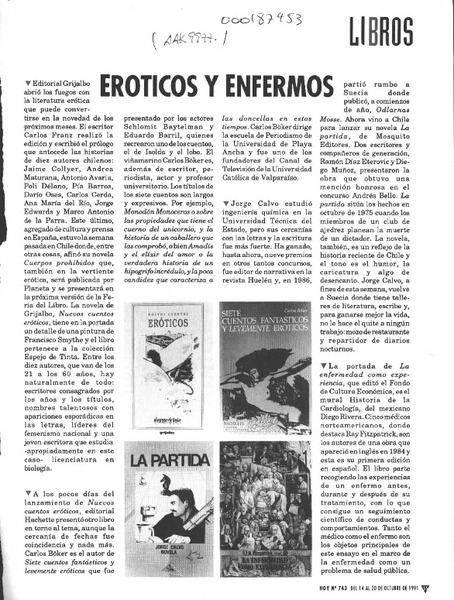 FRANZ, CARLOS - CALVO, JORGE - PARTIDA, LA - Boker, Carlos - Siete cuentos fantásticos y levemente eróticos - NUEVOS CUENTOS EROTICOS
