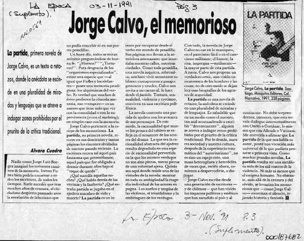 Jorge Calvo, el memorioso [artículo] Alvaro Cuadra.