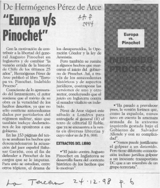 PEREZ DE ARCE, HERMOGENES - EUROPA VS PINOCHET, INDEBIDO PROCESO