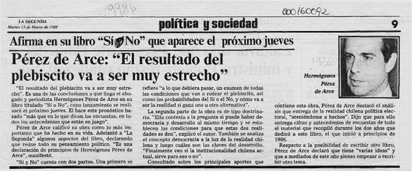 "Los Resultados del plebiscito van a ser muy estrechos" [artículo].