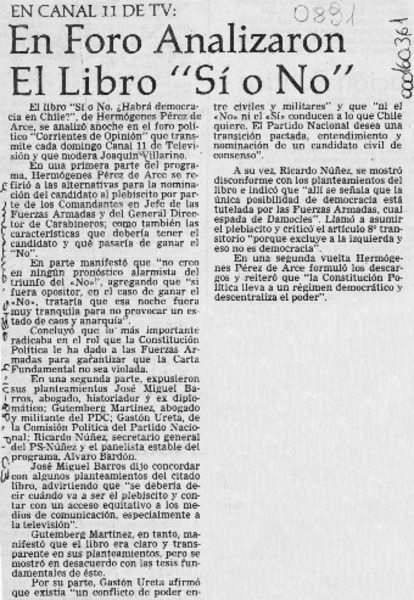 "Sí o No" [artículo] Arturo Fontaine Aldunate.