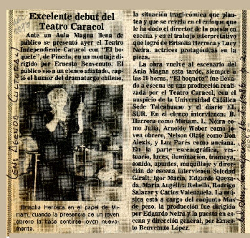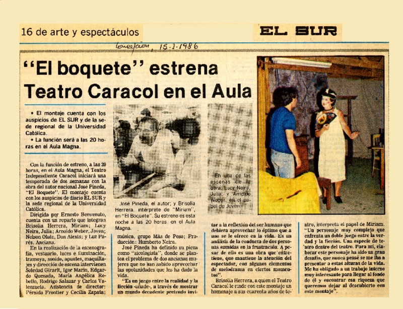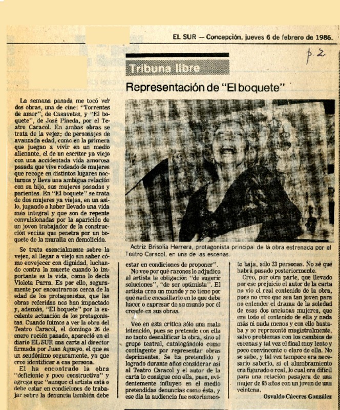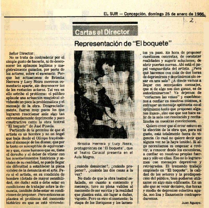 Representación de "El boquete" [artículo] Juan Aguayo.