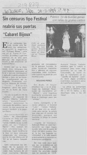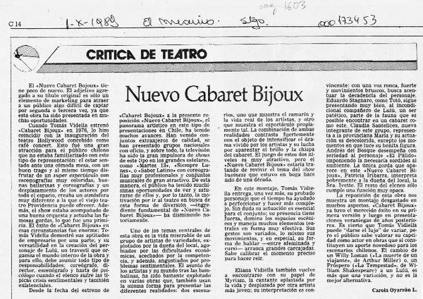 Nuevo Cabaret Bijoux [artículo] Carola Oyarzún L.
