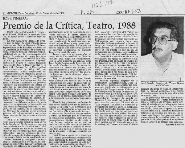 Premio de la crítica, teatro, 1988 [artículo].