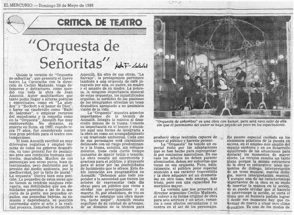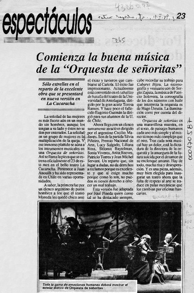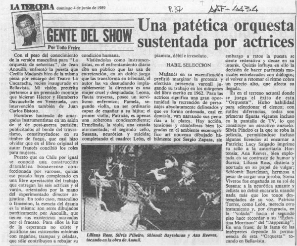 Una patética orquesta sustentada por actrices [artículo] Toño Freire.