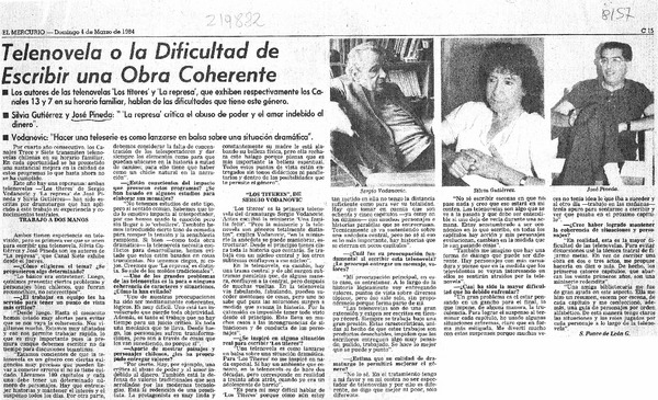 Telenovela o la dificultad de escribir una obra coherente [artículo] S. Ponce de León G.