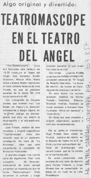 Teatromascope en el Teatro del Angel. [artículo]