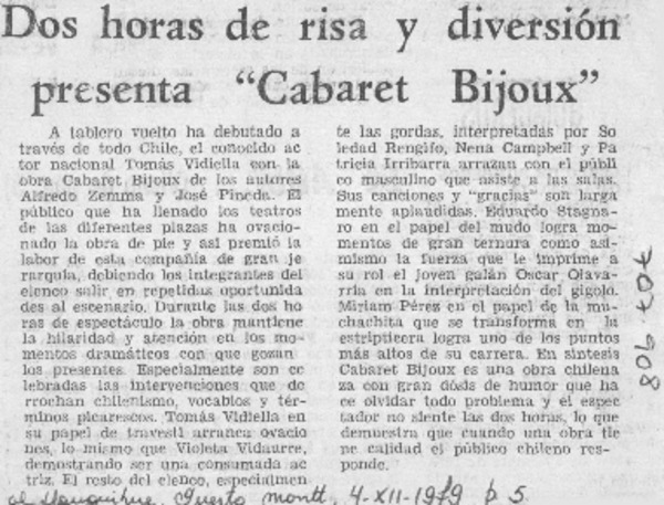 Autores chilenos - Pineda, José - Vidiella, Tomás - Cabaret Bijoux