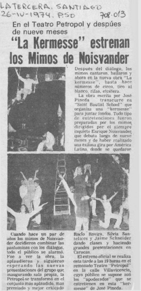 "La Kermesse" estrenan los mimos de Noisvander. [artículo]