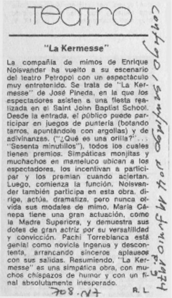 "La Kermesse" [artículo] R.L.