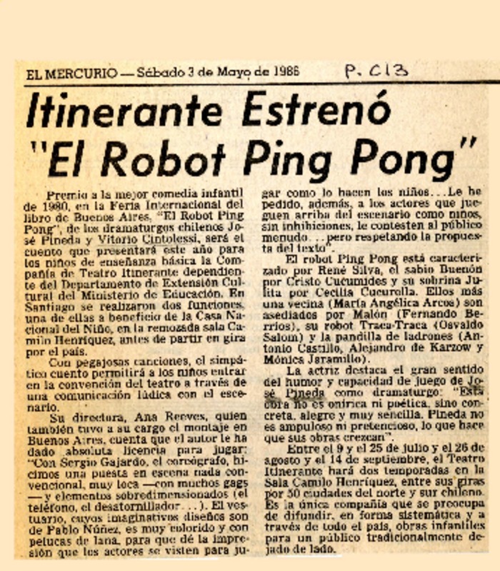 Itinerante estrenó "El robot Ping Pong". [artículo]