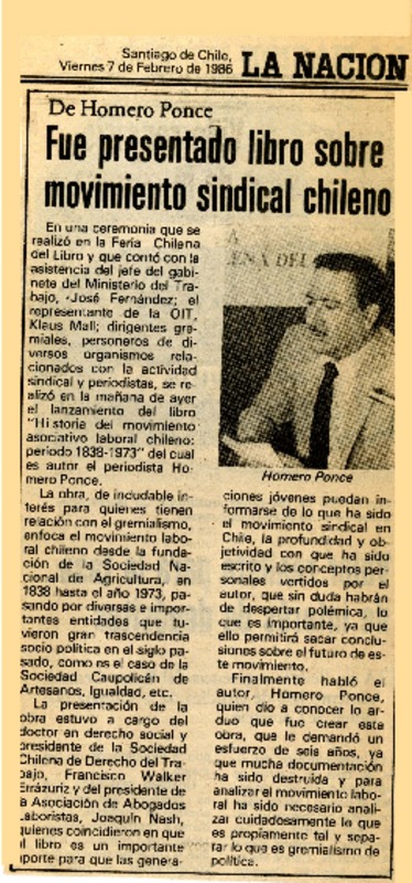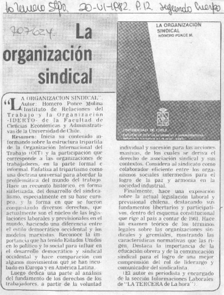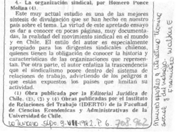 Autores chilenos - Ponce Molina, Homero - Organización sindical