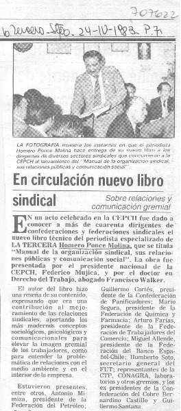 Libro sindical circula en la V región [artículo] Hernán Camacho.