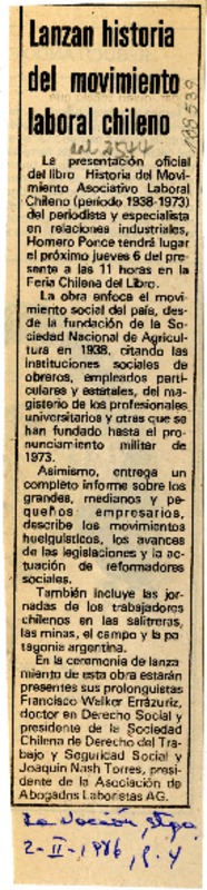 Lanzan historia del movimiento laboral chileno [artículo]