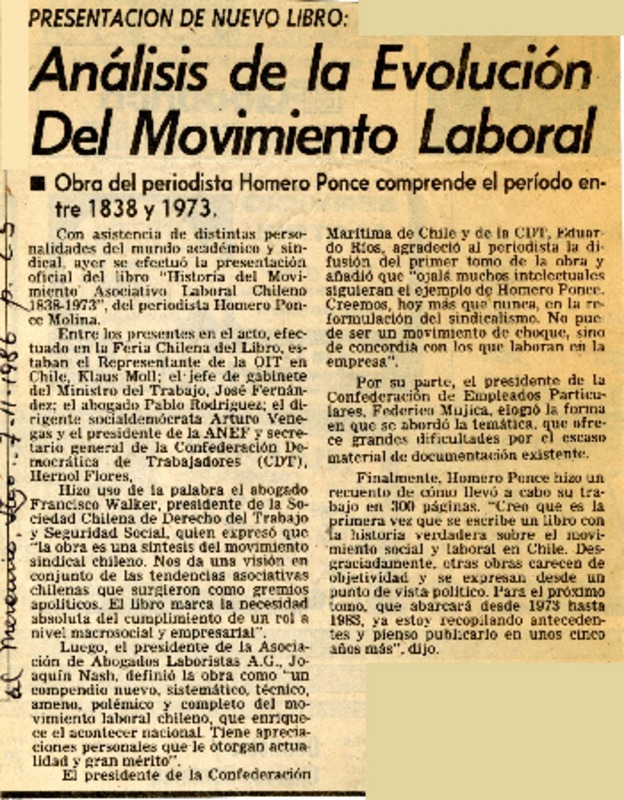 Historia del movimiento asociativo laboral chileno - Ponce Molina, Homero