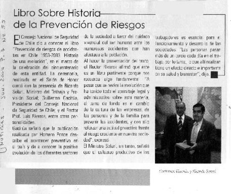 Libro sobre historia de la prevención de riesgos. [artículo]