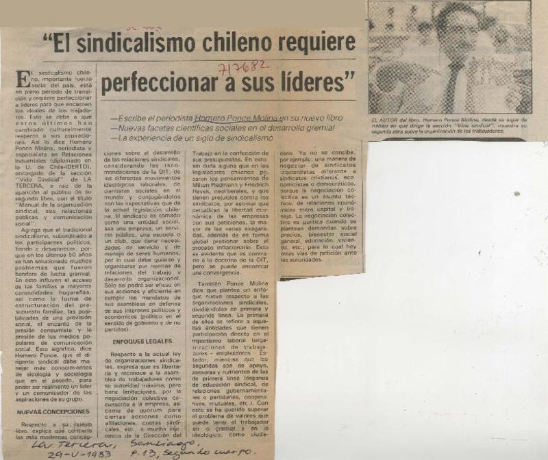 El sindicalismo chileno requiere perfeccionar a sus líderes". [artículo]