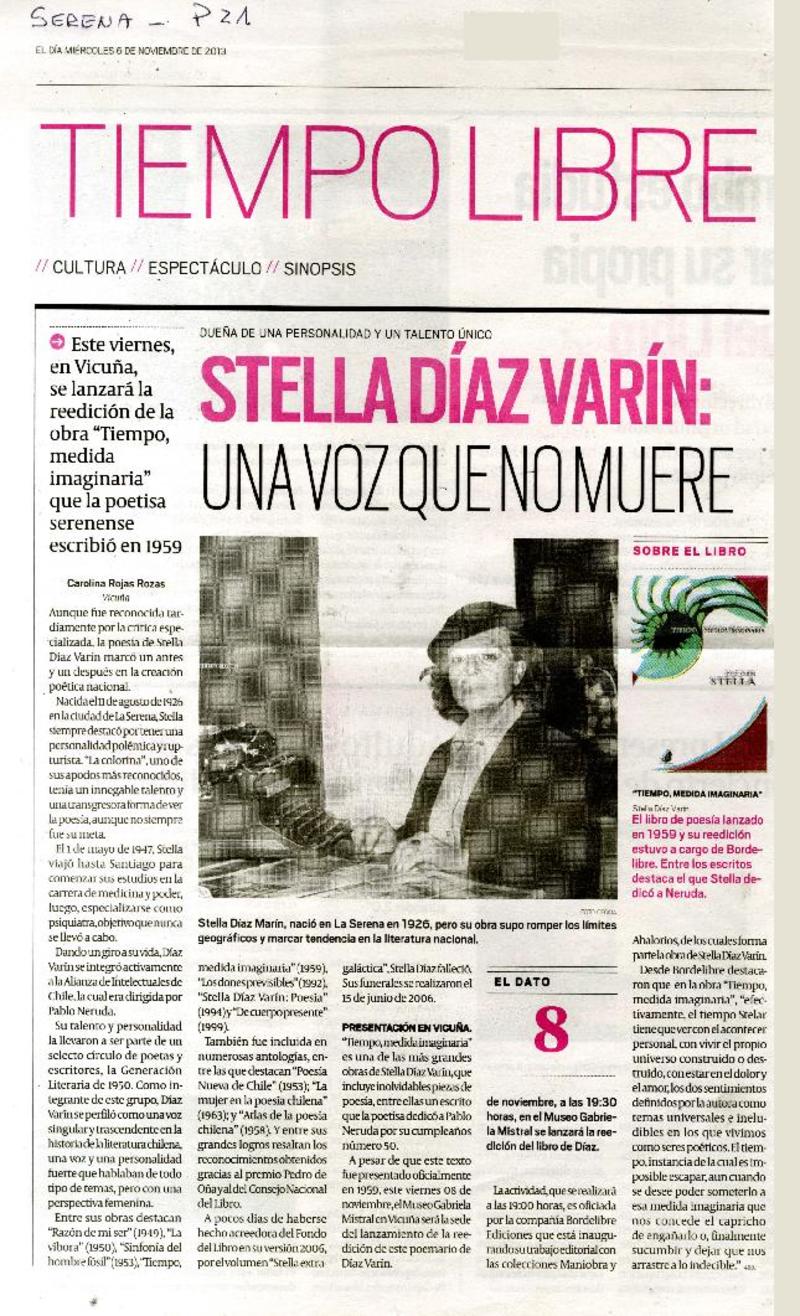 Vida y pasión de Stella Díaz Varín [artículo] Luis Alberto Manislla.
