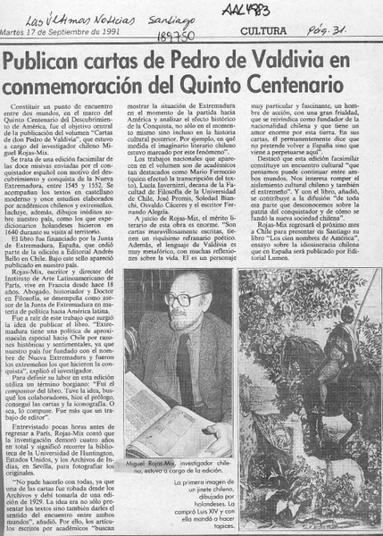 Publican cartas de Pedro de Valdivia en conmemoración al quinto centenario [artículo]