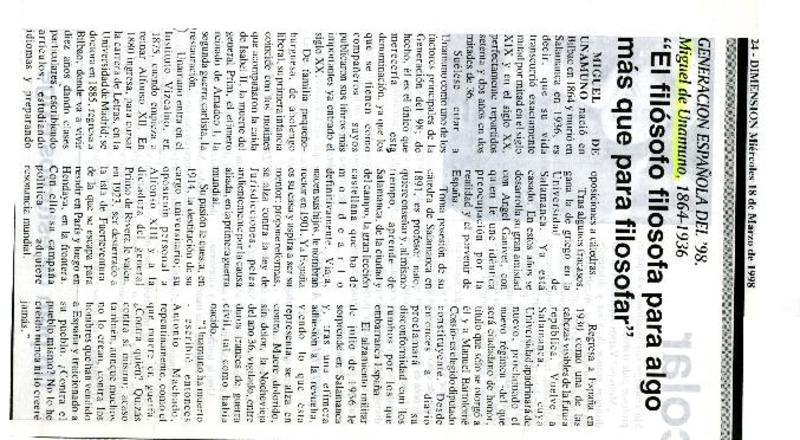 Recordando a Miguel de Unamuno [artículo] Marino Muñoz Lagos.