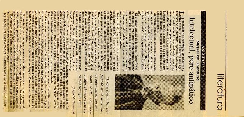 Unamuno y la literatura latinoamericana [artículo] Guillermo de Torre.