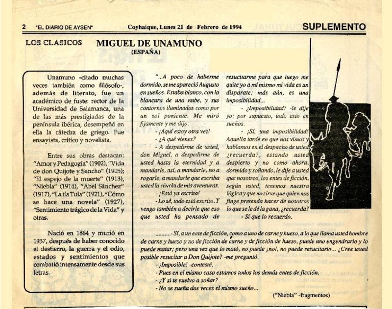 Unamuno quijotista [artículo] Darío de la Fuente.