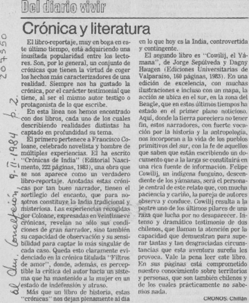 Autores chilenos - CRONICAS DE INDIA - COLOANE, FRANCISCO