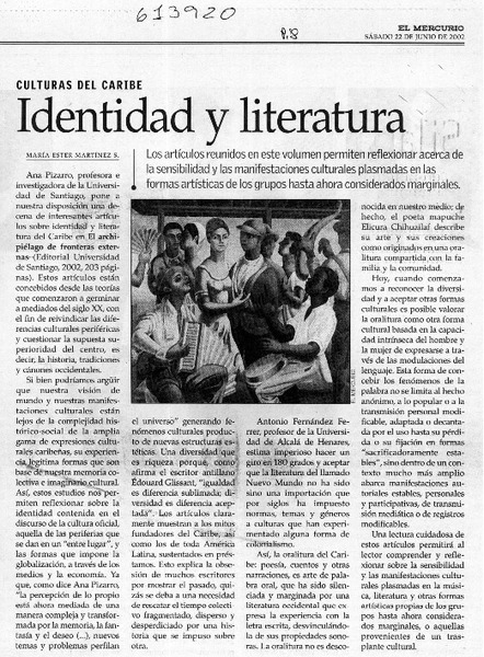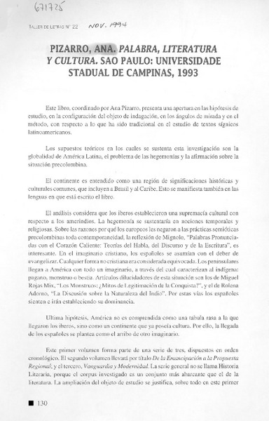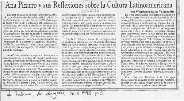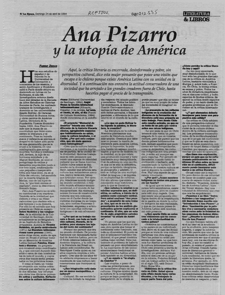 Ana Pizarro, tras la identidad Latino-Americana [artículo] Pedro Pablo Guerrero.