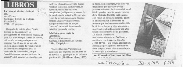 VALENZUELA, ESTEBAN - Luna, el viento, el año, el día - MATILDE ESPERA CARTA DE ALEMANIA - Pizarro, Ana