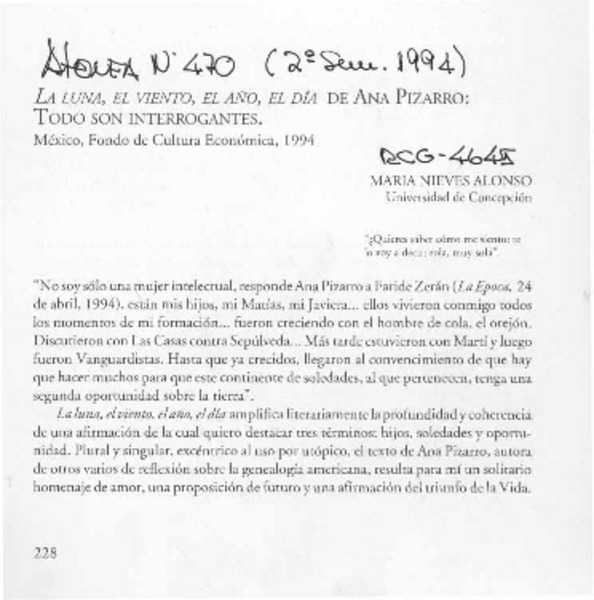 La luna, el viento, el año, el día de Ana Pizarro [artículo] María Nieves Alonso.