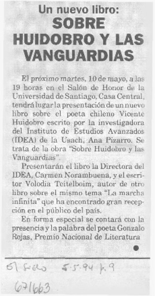 Autores chilenos - Huidobro, Vicente - Pizarro, Ana - Sobre Huidobro y las vanguardias