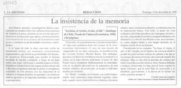 La insistencia de la memoria [artículo] Critián Cisternas Ampuero.