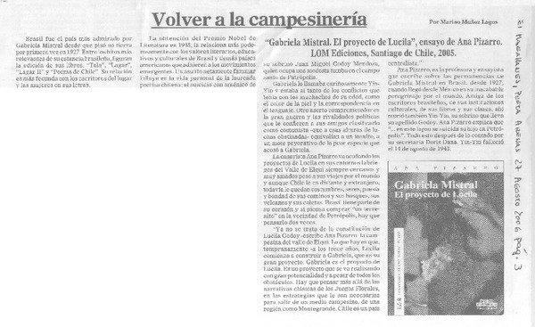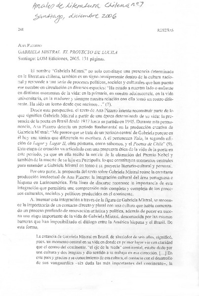 Autores chilenos - Mistral, Gabriela - Pizarro, Ana - Gabriela Mistral, el proyecto de Lucila